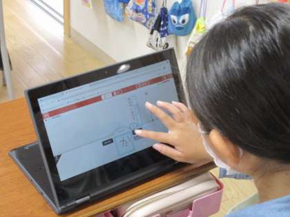 算数の角度の問題や漢字の書き取りテストなどに取り組み、正解が続くともらえるストーンやスターに歓声を上げていました。