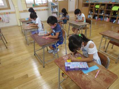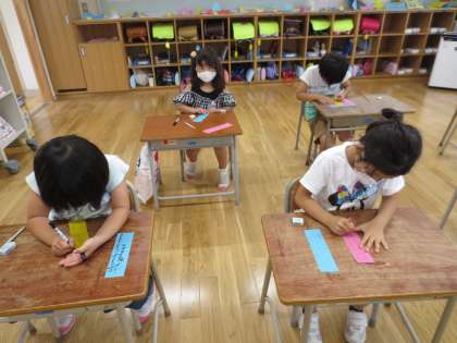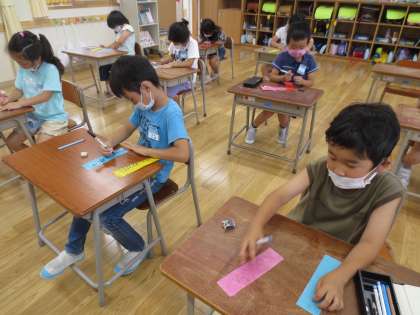 短冊に願い事を書きました。丁寧に思いを込めて書きました。やはり「ころながなくなりますように」という願い事が多かったです。