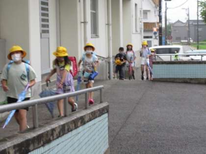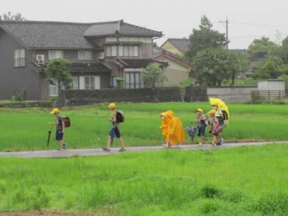 6年生はすでに出発しましたので、6年生のいない登校風景となりました。