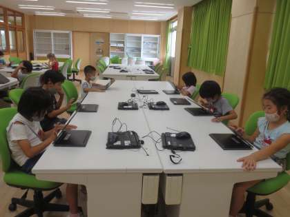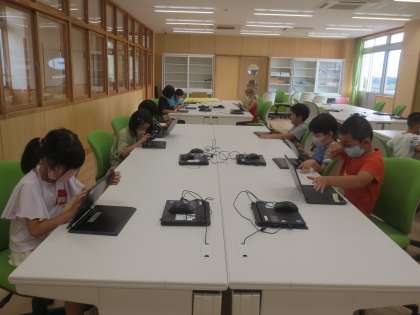 今日は、クロムブックを使って、1学期の振り返りのアンケートと、算数と国語のドリルに取り組みました。
