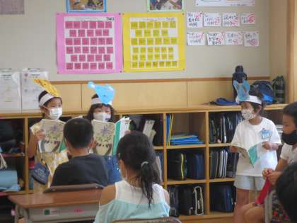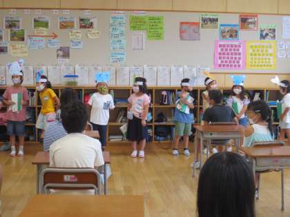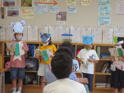 はじめは少し緊張していましたが、だんだんと調子よく読めるようになりました。5年生から「音読が上手だったよ」「ダンスが上手でした」とうれしい感想をもらいました。