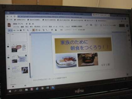 写真中:提出された6年生の「朝食をつくろう」を確認