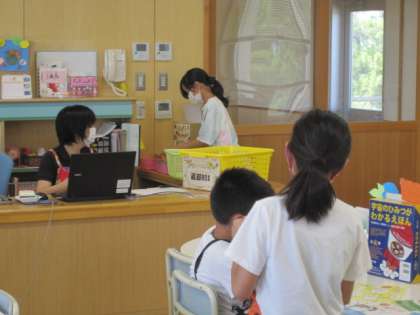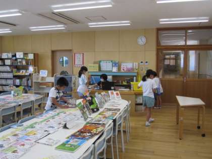参加した子供たちは、涼しい図書室で、本を読んだり、借りる本を探したりして過ごしました。