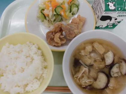 2学期の給食が始まりました。温かく栄養満点の給食に感謝していただきます。今日は、カラッと揚がった鶏肉の米粉揚げがとてもおいしかったです。
