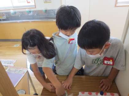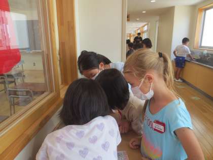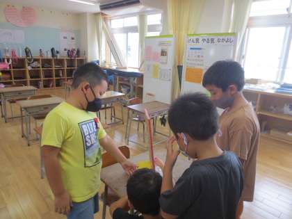 自由時間には、友達の作品を互いに見合ったり、作品で遊んだりする姿がたくさん見られました。とてもうれしそうな様子でした。