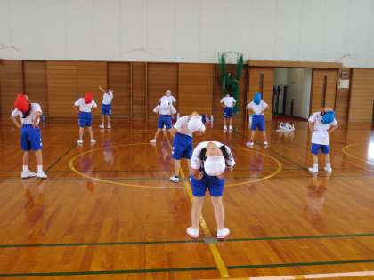 国語の時間「たのしいな、ことばあそび」で、マスの中に隠れている言葉を見付けています。たて、よこ、ななめに読んでたくさんの言葉を見付けました。体育の時間も1年生は元気いっぱいです。