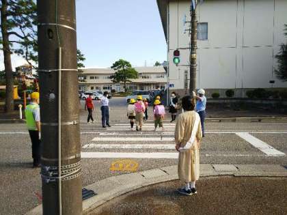 今日は、交通安全県民の日です。地域の多くの方々が見守ってくださる中、はまっ子たちは元気に登校しています。