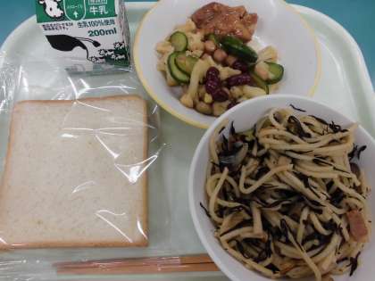 ベーコンとヒジキの和風スパゲッティーは、その見た目にちょっとびっくりした子が多かったみたいですが、「食べたら、おいしかったー」と、もりもり食べられたようです。醤油味でなじみ深い味でした。