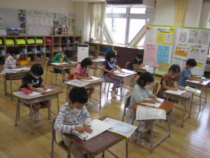1年生は漢字練習、2年生はゲームの説明、3年生は金づちトントンと題して、学習に取り組んでいました。