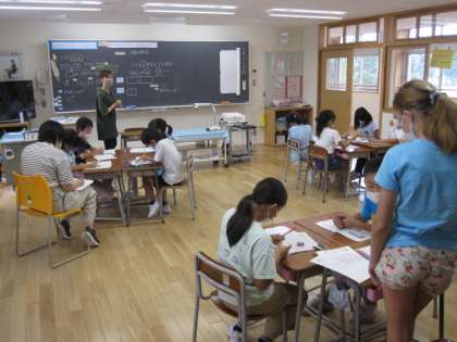 ソフトクリームの大きさを比べるにあたって、ペアで話し合ったり、グループ内で説明したり、みんなで考えたりと対話的な授業づくりを通して、主体的・協動的に学ぶ児童の育成について研修しました。