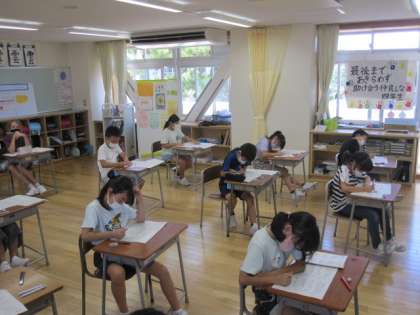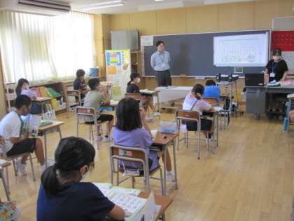 5年生は外国語。ALTによるレッスンにはりきっていました。