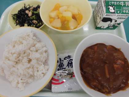 今日は、人気の食べキリンハヤシです。おいしく食べて食べ残しもゼロですね。ヒジキのサラダは、体のために良さそうでした。
