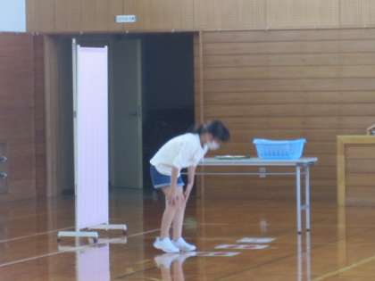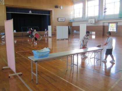 5年生は、明日行う就学時健診の会場準備を行いました。