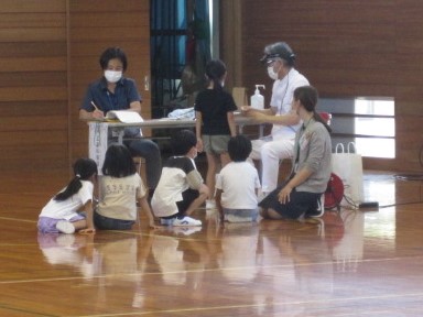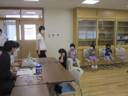 子供たちは4つの班に分かれて、内科、歯科、眼科や耳鼻科の先生の検診を受け、視力や聴力の検査を行いました。子供たちは指示に従って元気に検査を受けていました。