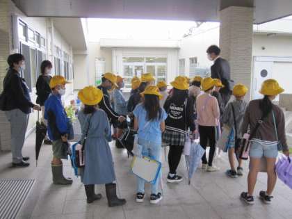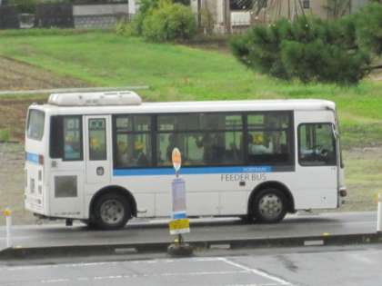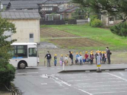 3年生は、浜黒崎小学校前のバス停からフィーダーバスに乗って社会科見学に出発しました。この後、岩瀬浜駅からライトレールに乗り換えて目的地を目指します。