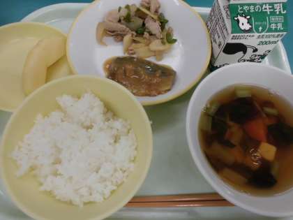 サバの味噌煮とごはんの組み合わせがとてもおいしいと思いました。リンゴやきのこなど秋の味覚が給食にもみられます。