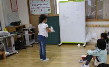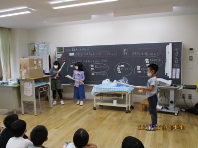 おもちゃができた子供が多くなってきたので、作ったおもちゃの見せ合いをしました。