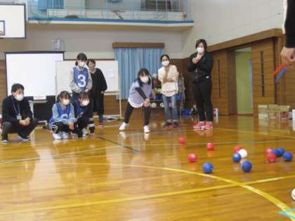 午後は、育友会主催の「はまっ子2021」が行われました。6年生を対象に、パラリンピックですっかり身近な競技となった「ボッチャ」に挑戦です。
