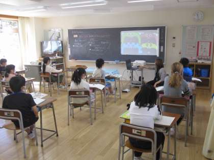 4年生は理科。涼しくなると動物はどうするかを動画で学習していました。