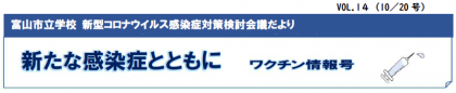 「富山市立学校 新型コロナウイルス感染症対策検討会議だより」14号が昨日発行されました。印刷したものは子供たちを通して保護者の皆様に配布する予定にしています。ホームページで見ることができます。右側のコーナー、または下の部分をクリックしてください。