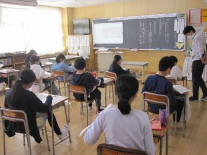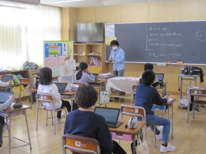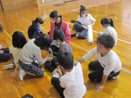 4年生は、わくわくタイムに行った合奏の片付けをしていました。
