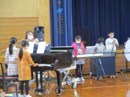 ♯や♭が多く、上手く弾けるようになるために、休み時間や家でも粘り強く練習してきた4曲です。演奏が終わった後、アンコールがかかり、もう一回1曲演奏しました。全校のみんなに発表することで、自信がついたと思います。