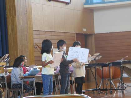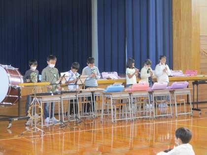 4年生は、これまで外部講師の先生と合奏の練習してきました。わくわくタイムでは、その4曲を全校児童に披露しました。