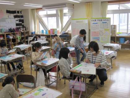 2年生は「ことばのかたち」絵を描いています。