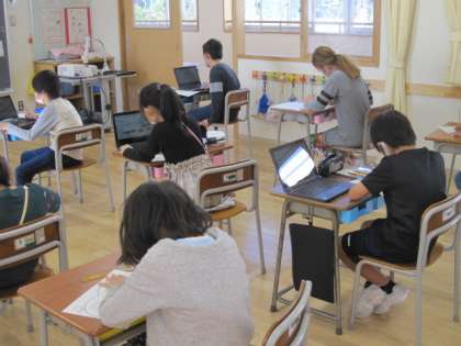 4年生はクロムブックを利用しながら、合奏の振り返りをしていました。