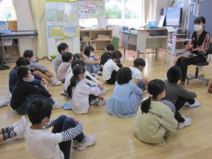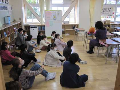 今日は待ちに待った読み聞かせの日。今週は3、4年生です。とても集中して話を聞いています。