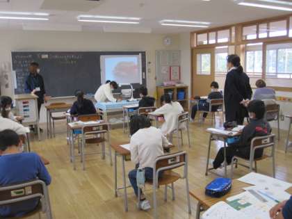 4年生は算数。並んでいる玉の数を工夫して数える方法を考えています。