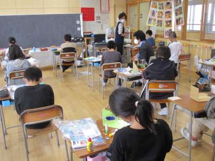5年生は図工。ミラクル!ミラーステージを作っています。