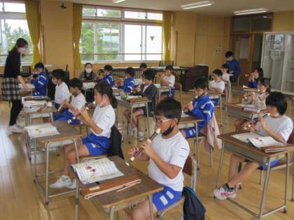 3年生は音楽。リコーダーの練習です。上手くなってきました。