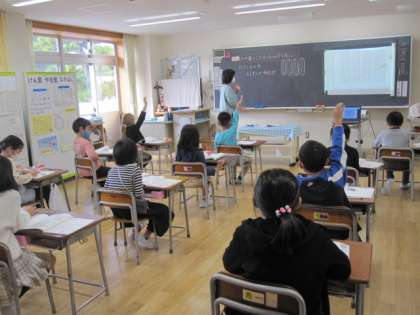 2年生も算数。かけ算の求め方を考えています。「6かける4は・・・」