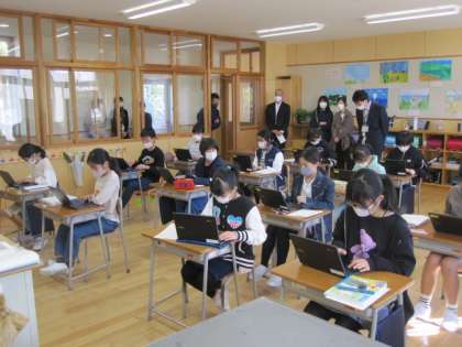 6年生は国語「鳥獣戯画を読む」クロムブックを使って意見をまとめていました。