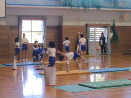 4年生は体育「浜小マットレンジャー」友達の意見を聞いたり、クロムブックを使ったりしてマット運動の練習をしました。