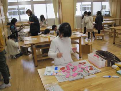 4年生は図工。「トントンギコギコクリエーター」のこぎりやかなづちを使っています。