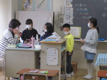 2年生は九九の暗唱。「3の段、合格した!」みんながんばっています。
