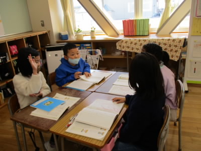 今日は、国語「そうだんにのってください」の学習で、それぞれが自分の相談したいことについてグループで話し合いをしました。
