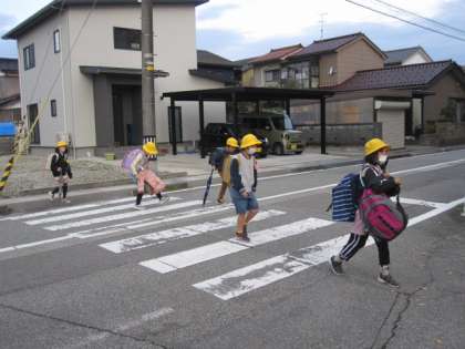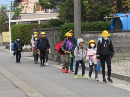 班の中に大きなリュックを担いでいる子供も交ざって、はまっ子たちは今日も元気に登校しています。