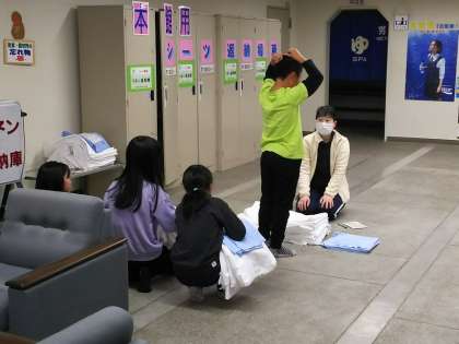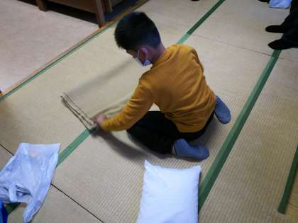 4年生、5年生は元気な目覚めでした。シーツをたたみ返却し、朝の清掃活動を行っています。みんな元気です。今日もいい天気になりそうです。