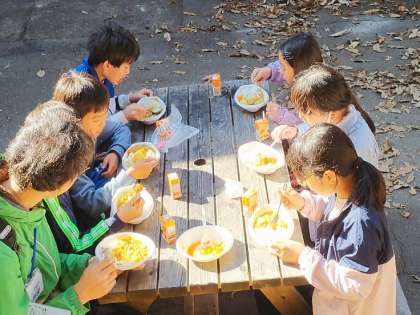 5年生の活動、野外炊飯は順調に進み、美味しく出来上がりました。