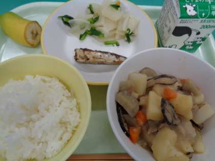 今日は、寒い1日でした。給食には、柚が登場です。カブやカブの葉との彩りがきれいでした。もう冬ですね。