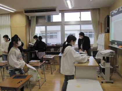 6年生は社会。江戸時代の鎖国、宗教、絵ぶみについてノートにまとめ、提出していました。