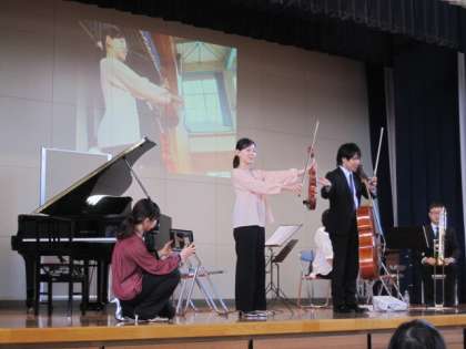 午後は「学校コンサート ピアノと管弦楽器によるアンサンブル」を開催しました。