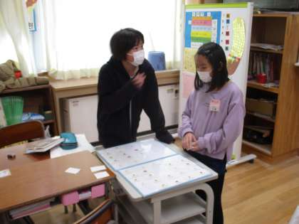 5年生の外国語では、丁寧な言い方でほしい物を注文する会話を学習してきました。今日は、班ごとにスペシャルメーニューを作り、お店をする人と注文をする人に分かれて、会話をやってみました。注文を伺ったり、値段を聞いたりと楽しいやりとりができました。