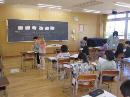 2年生は音楽。リズムを組み合わせて、おまつりの音楽を作っています。