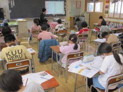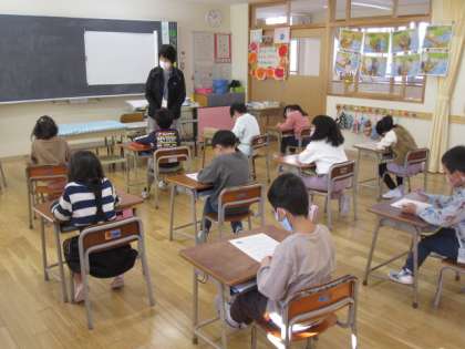 2年生は音楽。リズムを組み合わせて、おまつりの音楽を作っています。