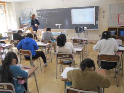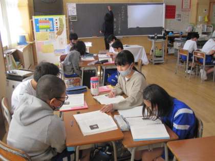 4年生は算数。今日は2つグループに分かれて問題に挑戦しました。