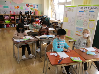 最初にクラス全員で行い、その後ペアでしました。